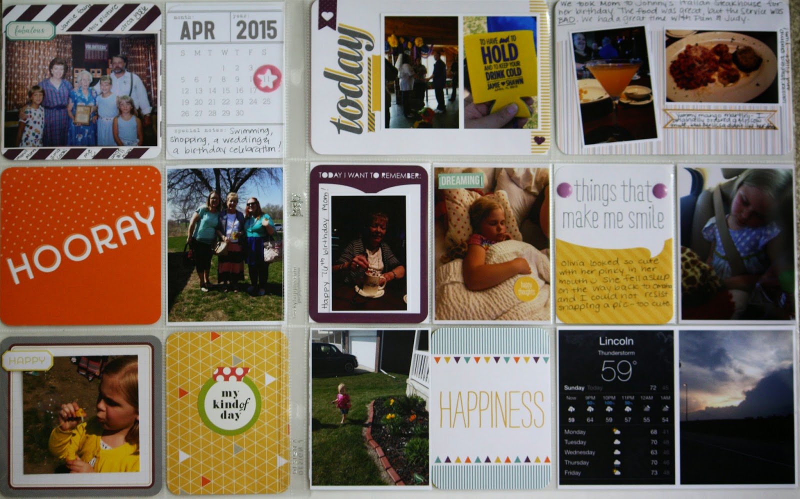 Week 14 was a busy one, especially with Easter. I always have a lot of pictures to scrap after Easter weekend. I love with Project Life how I can get so many pictures into one layout, especially using the collage app, PicFrame. For this week, I primarily used my Studio Calico kit from April, Lisse Street, but as always, I use a hodgepodge of bits and pieces from here and there! Here is the left side: